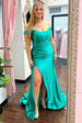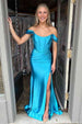 Make a grand entrance in the Off the Shoulder Royal Blue Prom Dress with Train. This exquisite dress is made from luxurious satin fabric and is available in a spectrum of vibrant colors. including royal blue. hot pink. green. red. orange. and peacock. The elegant scoop neckline and off-the-shoulder design add a touch of sophistication. while the slit and pleats add an extra layer of style to this dress.