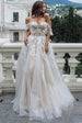 Vintage Lace A-line Sweetheart Off-the-Shoulder Beach Wedding Dresses.