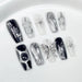 10pcs Y2k Black French Press On Nails Handmade Crocodile Pattern Five-point Star False Nails Metal Punk Style DIY Manicure Art
