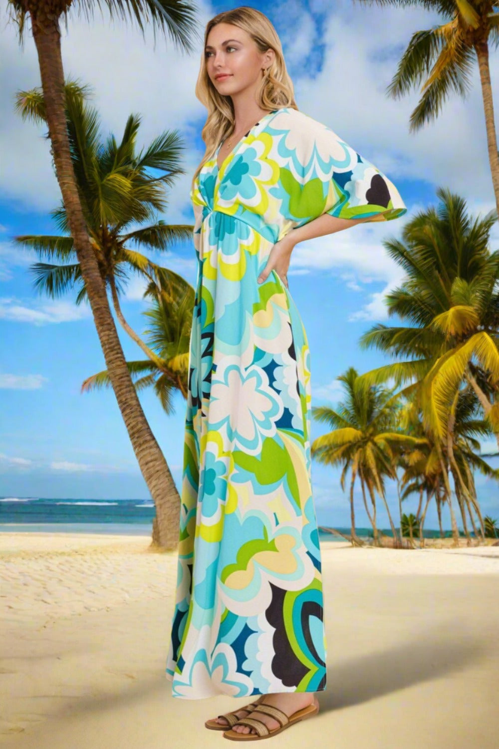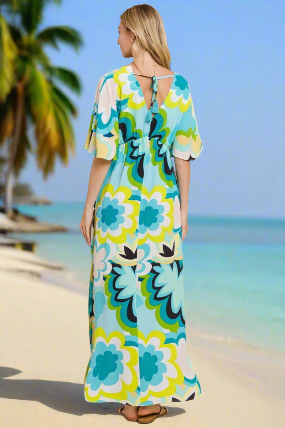 Get ready to embrace your inner flower child with our 70's Floral Muumuu Maxi Dress! Made with a playful floral print. this dress will bring groovy vibes to any occasion. Its maxi length offers both comfort and style. making it the perfect addition to your retro wardrobe.
