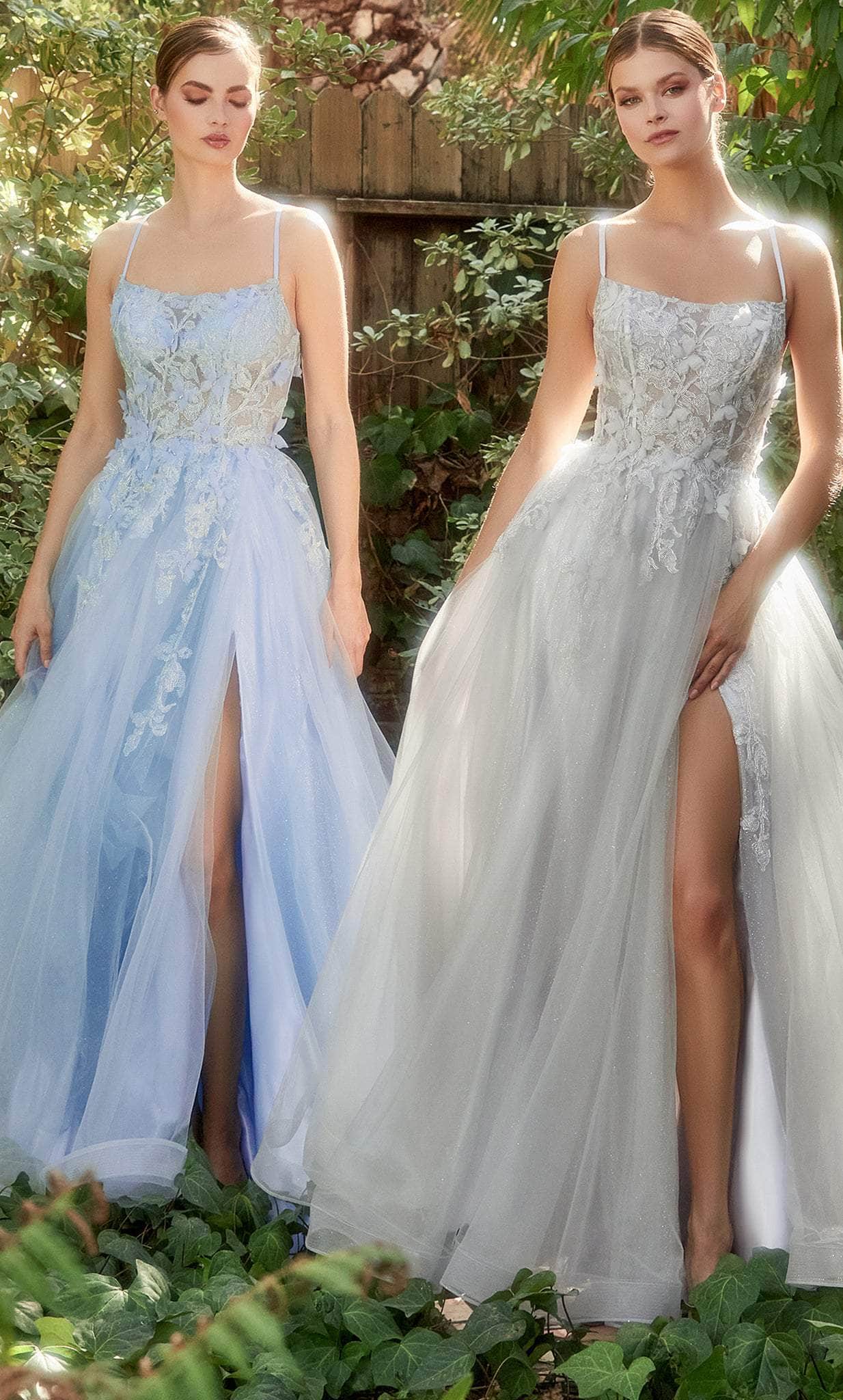 Get ready for everyone to stop and stare when you show up in this Andrea and Leo A1141 creation. The sleeveless piece is exquisitely detailed with lace embroidery and butterfly appliques. It has a captivating illusion bodice with a scoop neckline. spaghetti straps and lace-up bandeau back. The skirt flourishes a full length A-line silhouette and opens a high slit for a sexy look. Flatter your finest assets as you enthrall the crowd in this Andrea and Leo A1141 masterpiece. Models are wearing the Dusty Rose. Lavender. Silver and Sky Blue colors.