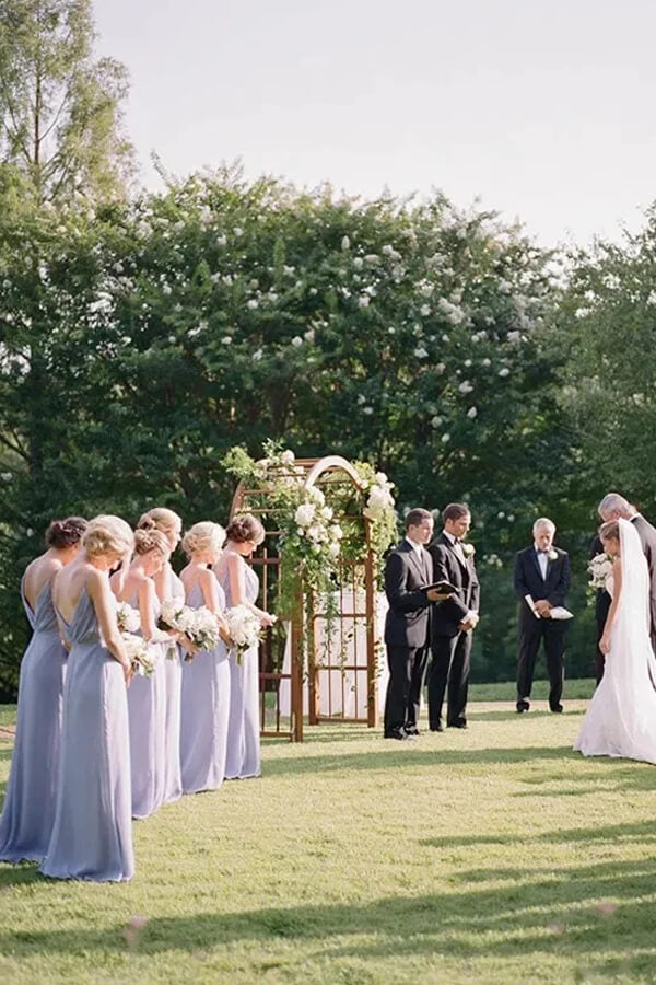 Classic Lilac Chiffon A-line V-neck Floor Length Bridesmaid Dresses. MBD202
