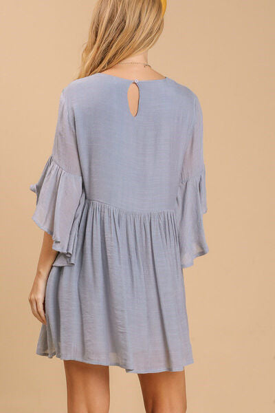 Full Size Floral Embroidered 3/4 Bell Sleeve Boho Dress. Featuring beautiful embroidery and trendy bell sleeves. this dress is perfect for any bohemian fashion lover. Made with high-quality materials. it offers both style and comfort for all-day wear. Elevate your wardrobe with this must-have summer dress.