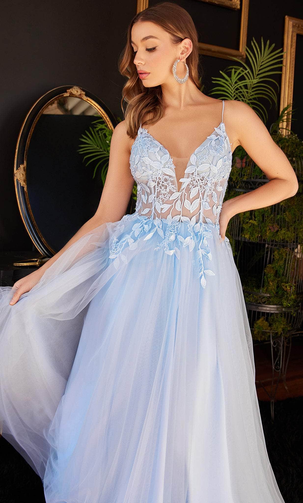 Impress the crowd with your charm as you wear this creation from Ladivine CD2214. An alluring leaf lace appliques adorn the sheer corset bodice and top skirt. The sleeveless style displays a plunging v-neckline and spaghetti straps. Made in layered tulle. the gathered skirt creates an A-line silhouette cascading to the full length hem and sweeping train. This Ladivine CD2214 masterpiece will let you celebrate that divine feminine beauty! Models are wearing the Blue and Red colors.