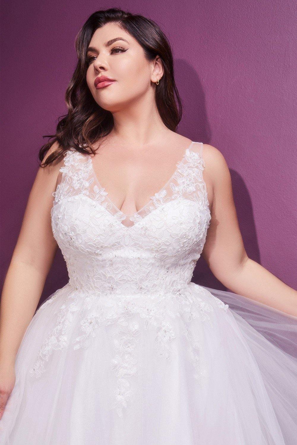 This gorgeous long dress features a layered full tulle skirt. lace bodice with deep v-neckline. Beautiful curve wedding gown.
