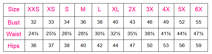 Sizes : XXS. XS. S. M. L. XL. 2XL