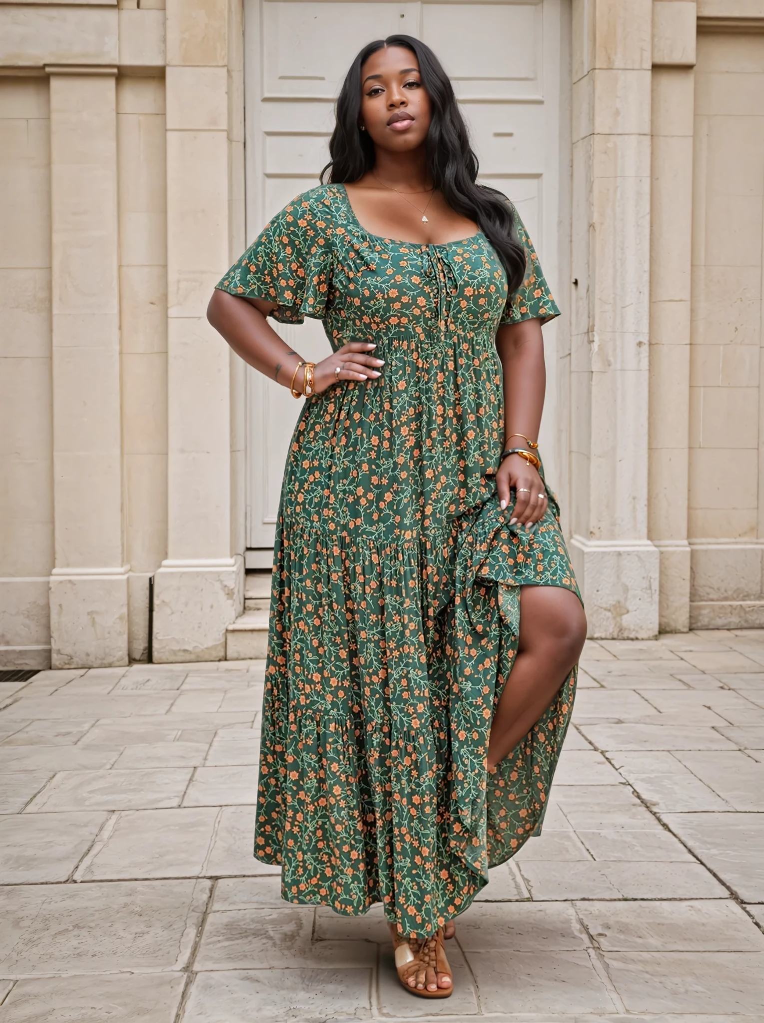 Our Dark Green Floral Summer Maxi Dress exudes femininity. Its soft. flowing fabric drapes beautifully. while the fresh floral pattern adds a touch of elegance. Perfect for summer events and occasions. this dress will have you feeling confident and stylish all day long. Shop all Plus Size Summer Dresses!