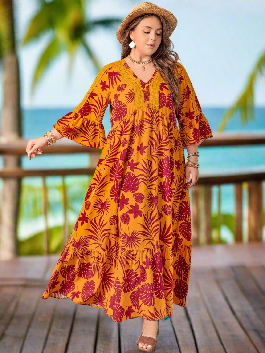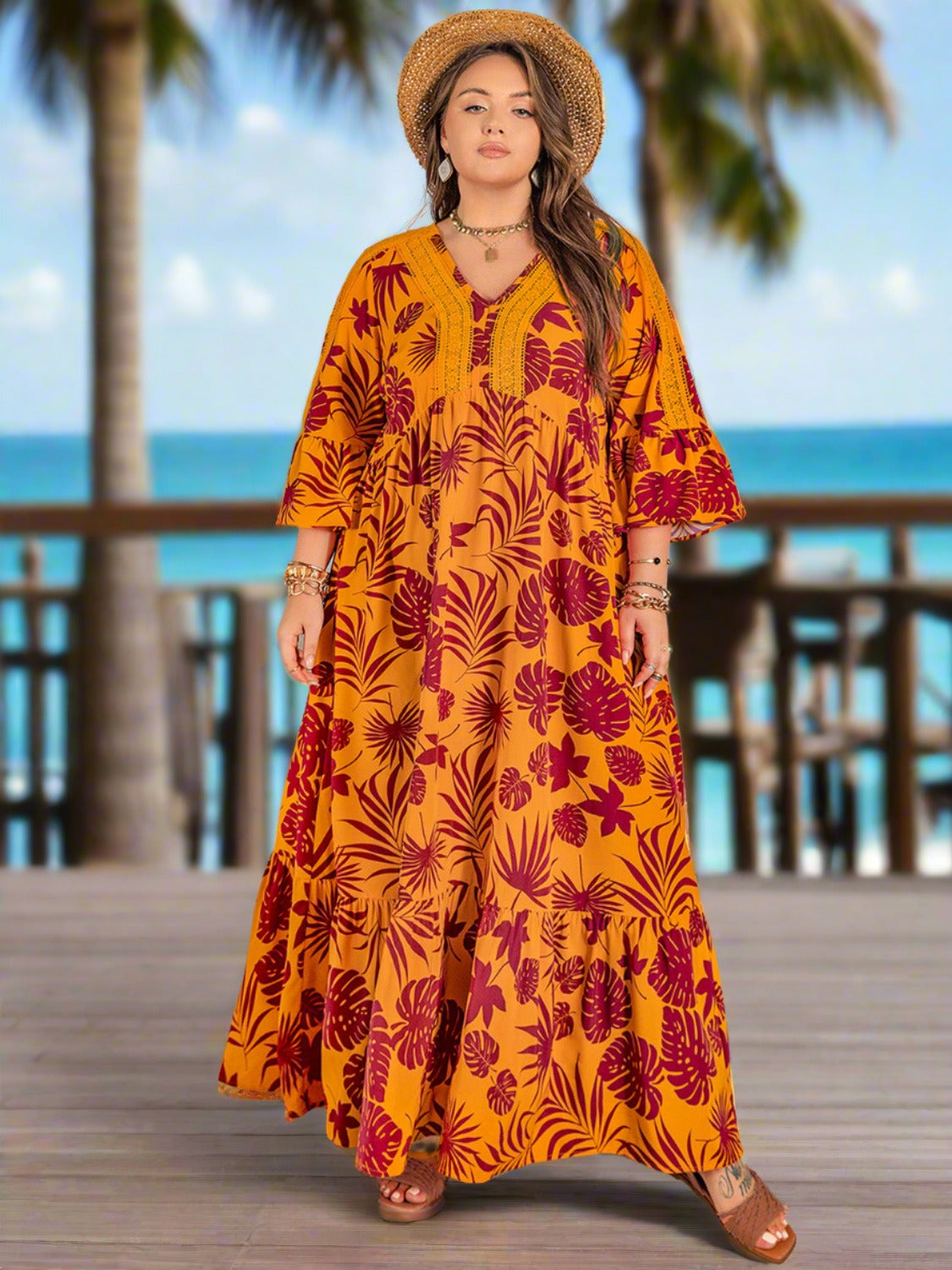 Take your vacation style to the next level with our Plus Size Lace Detail Vacation Maxi Dress. The elegant lace detailing adds a touch of sophistication. while the flowy maxi length provides ultimate comfort. Long Dress is Perfect for a day at the beach or a tropical getaway. this dress will make you feel like a true beach goddess. Shop all Women's Plus Size Dresses.