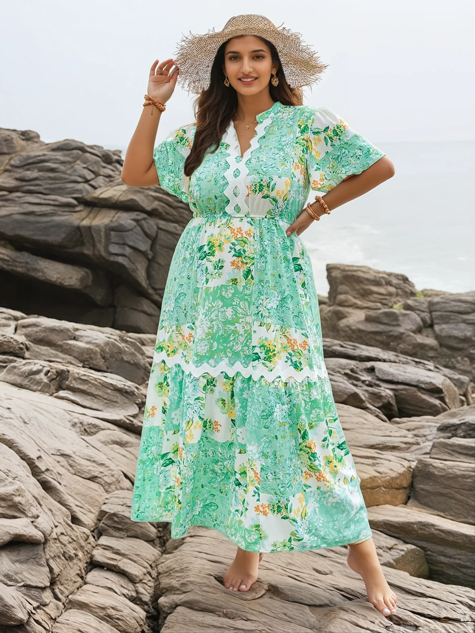 Romantic Summer Dress. Plus Size Short Sleeve Light Green Floral Beach Maxi Dress. Designed for both style and comfort. this Plus size floral maxi dress features short sleeves and a beautiful floral pattern that will have you feeling effortlessly chic while staying cool and comfortable this summer. Perfect for beach days or everyday resort wear. this maxi dress..