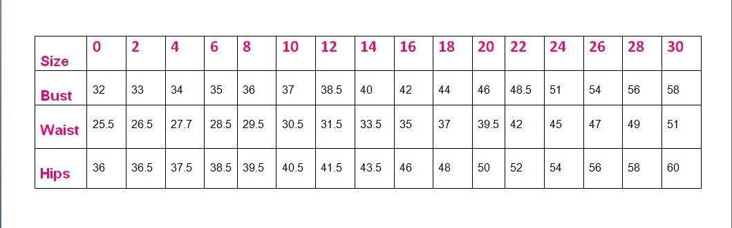 | US Size | 0 | 2 | 4 | 6 | 8 | 10 | 12 | 14 | 16 | |||||||||