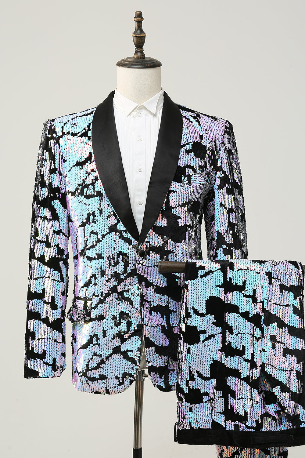 Purple Sequins Mens Two-Piece Suit Shawl Lapel One Button Tuxedo