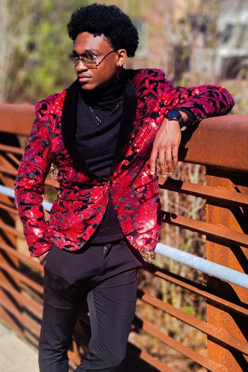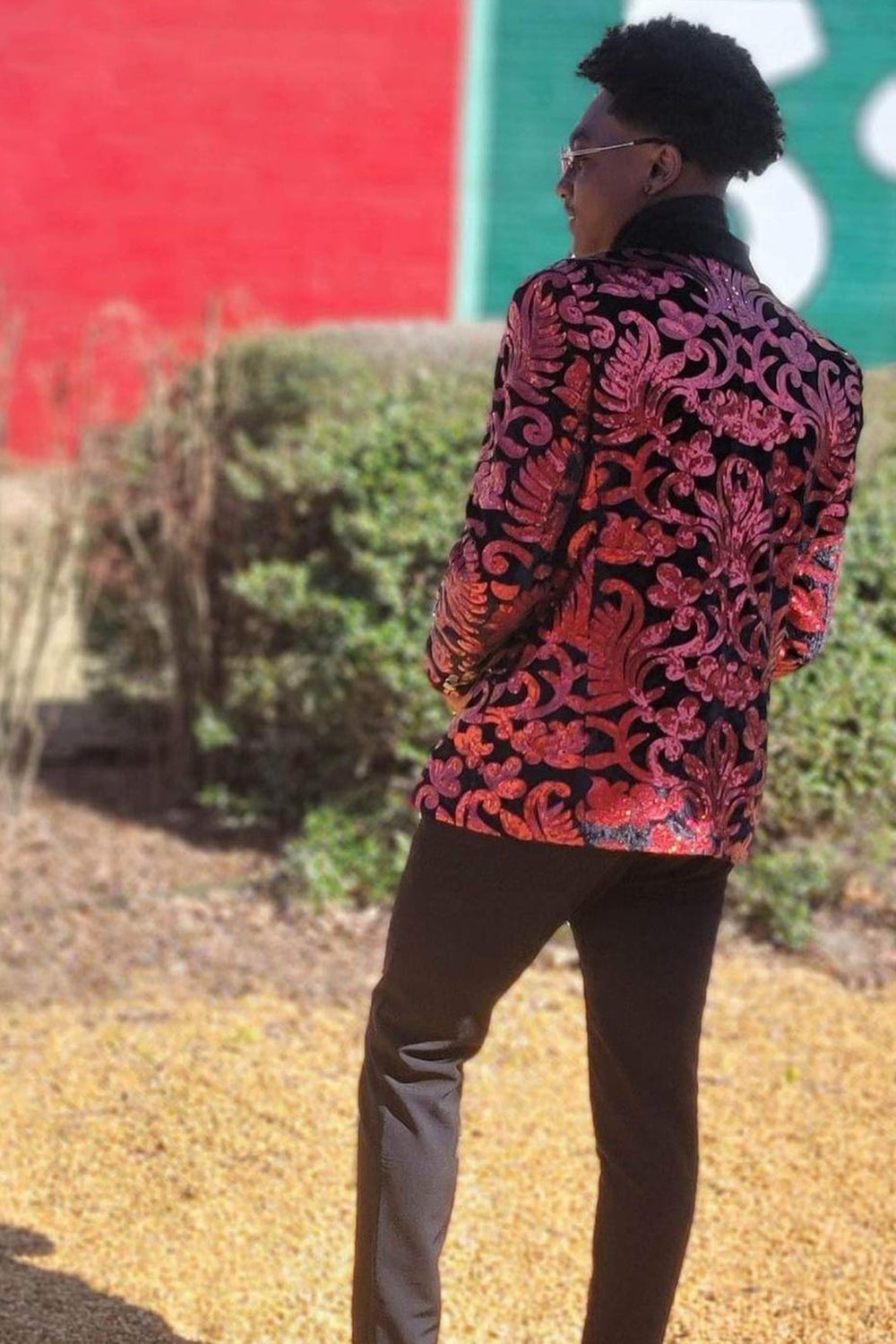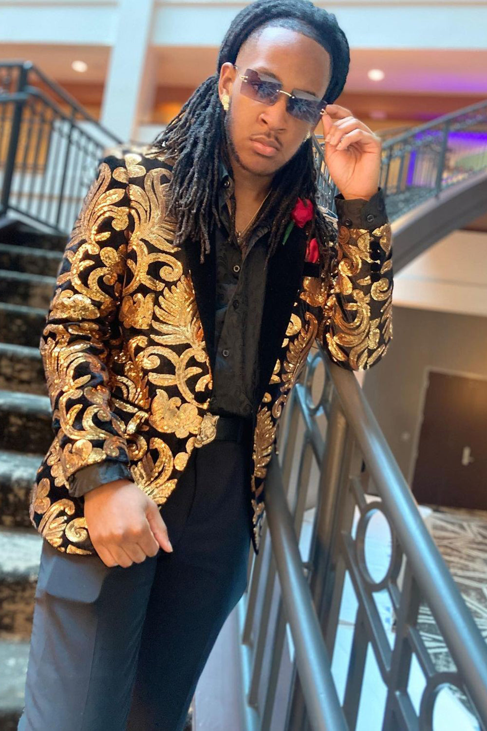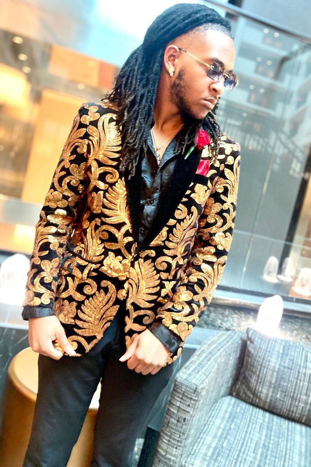 Shawl Lapel One Button Black Golden Jacquard Men's Prom Blazer