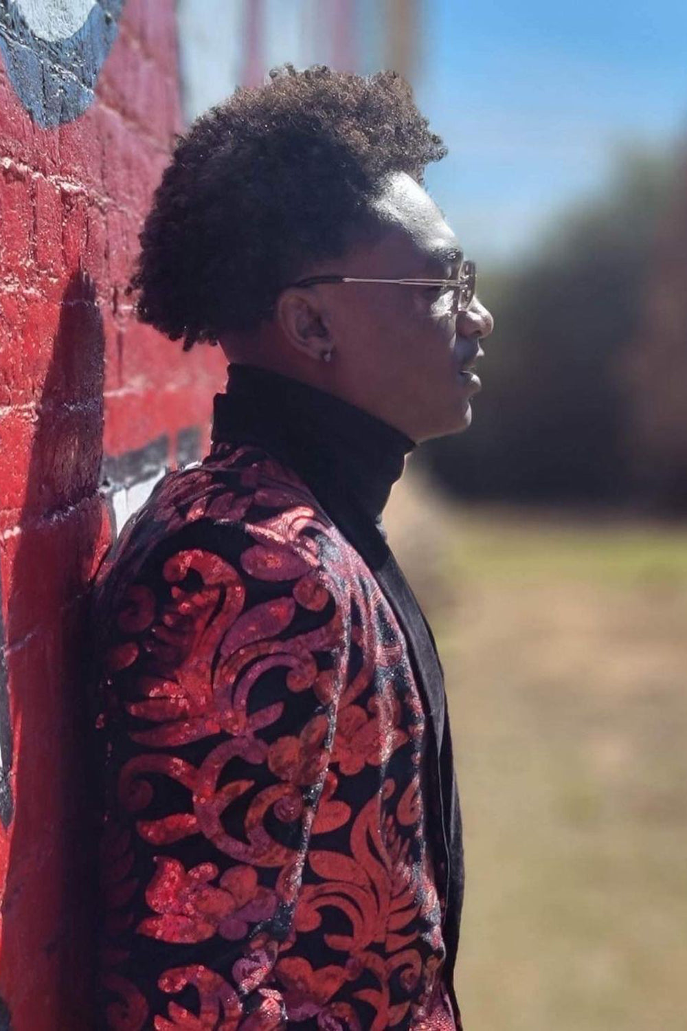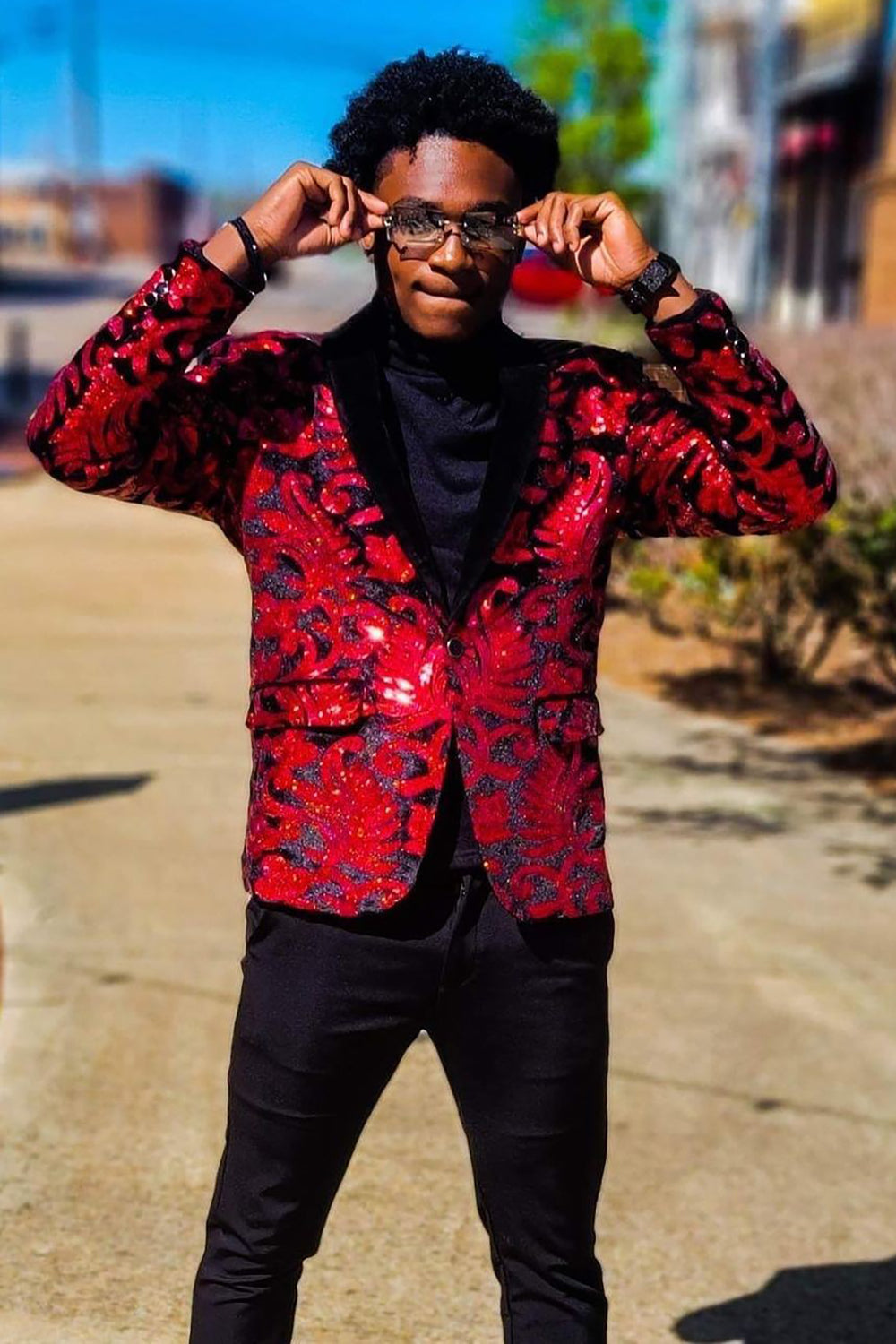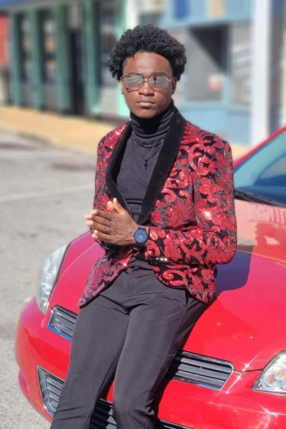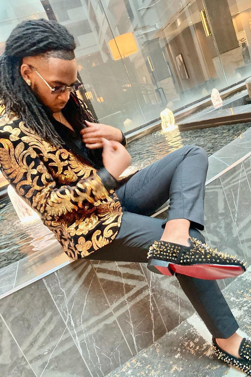Shawl Lapel One Button Black Golden Jacquard Men's Prom Blazer