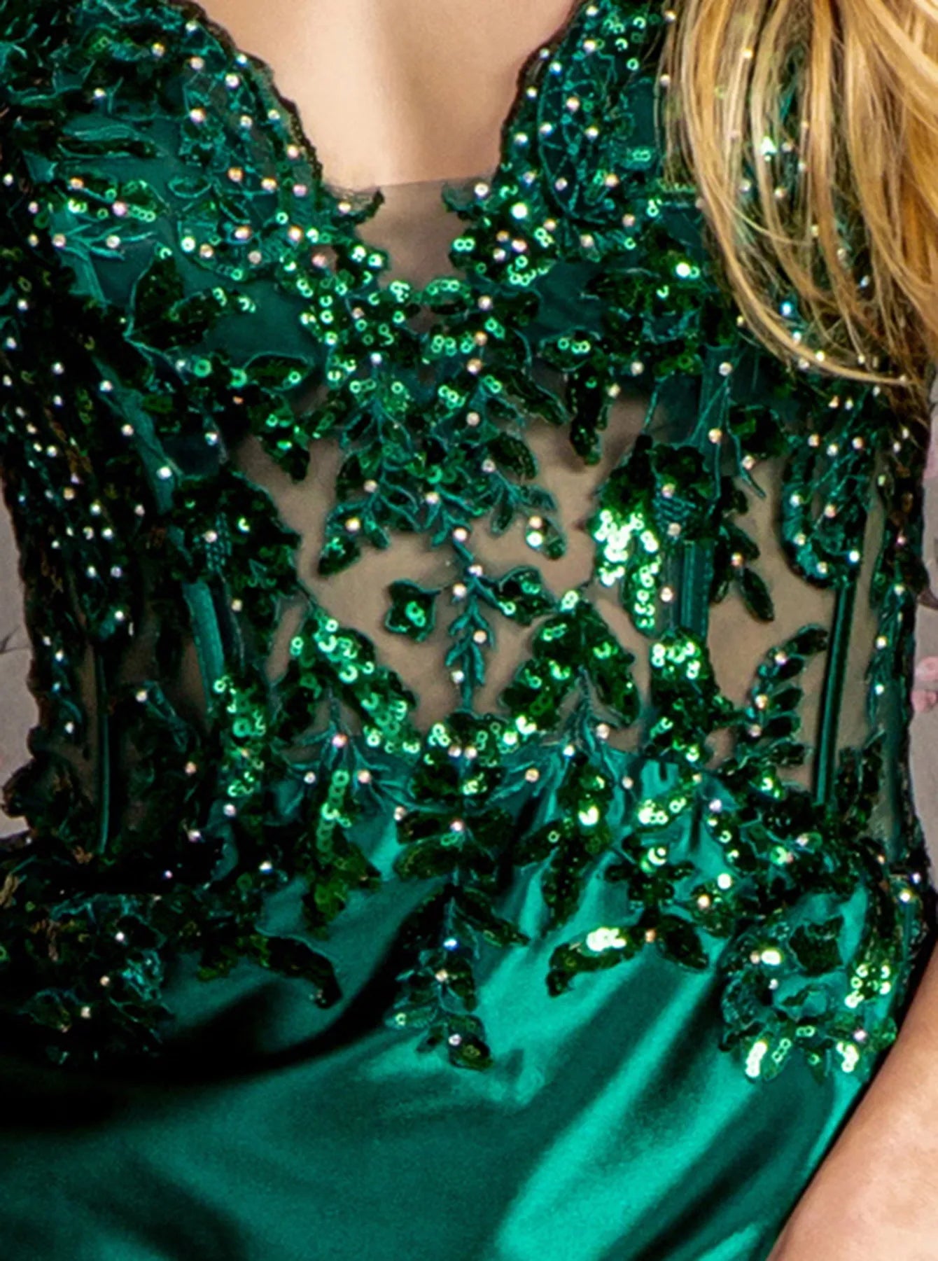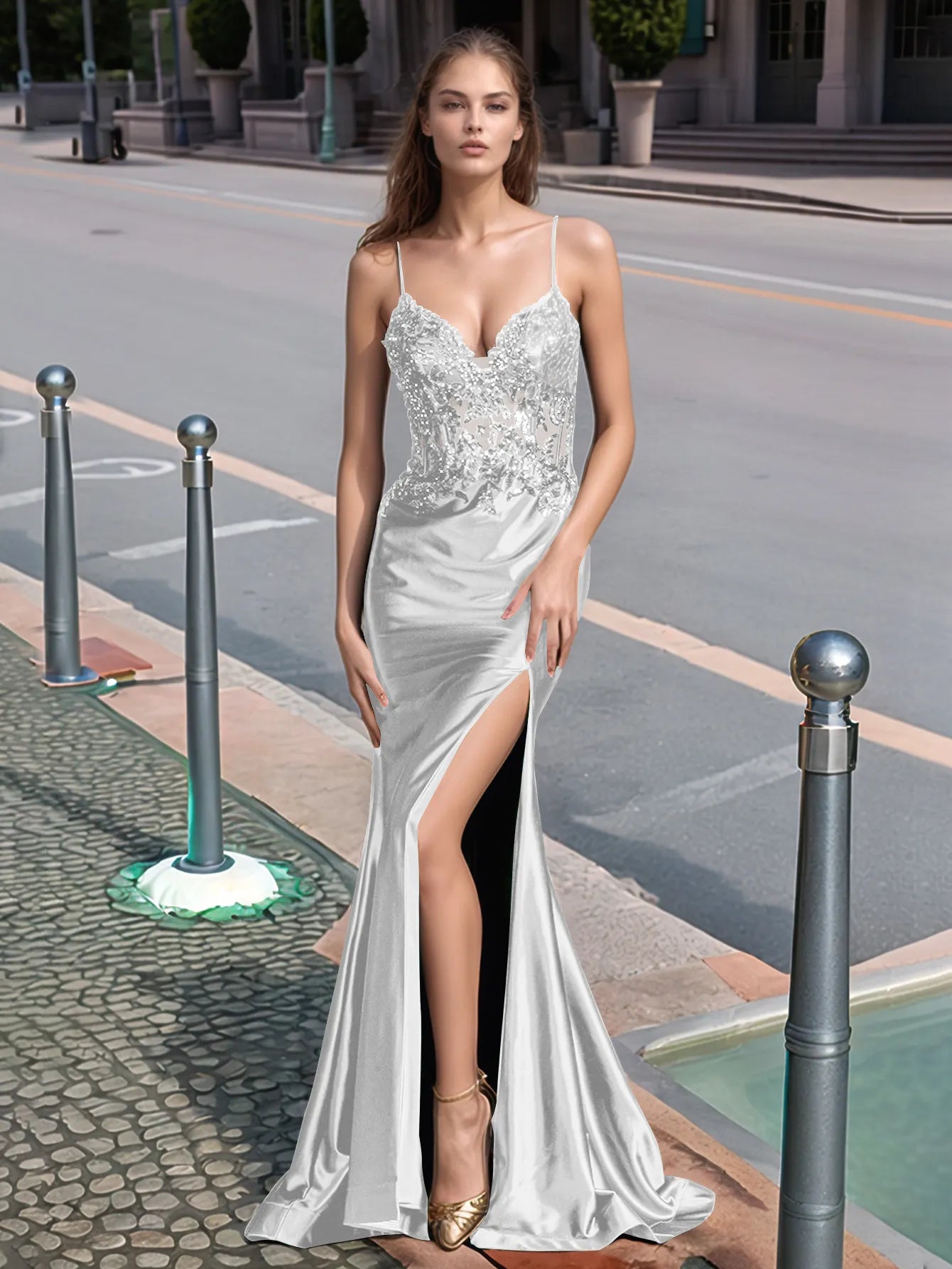 This elaborate cut waist prom dress features a deep V-neck design. offering a sexy silhouette. The embroidery tank backless dress showcases the glamorous body.