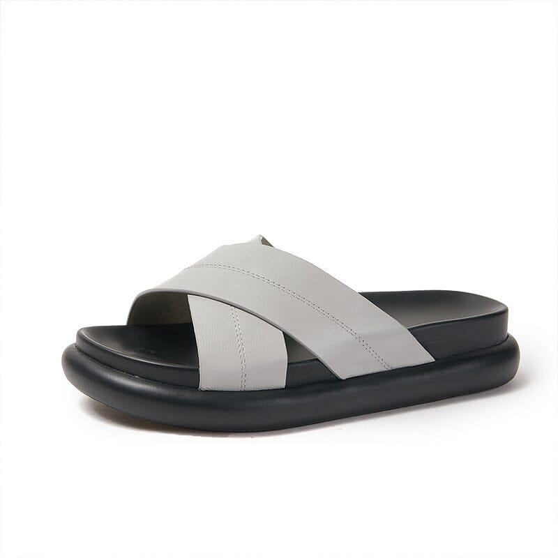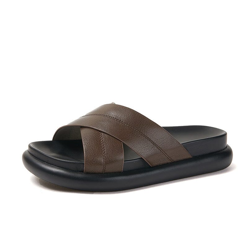 Summer Retro Soft Leather Thick Soled Slides Shoes
