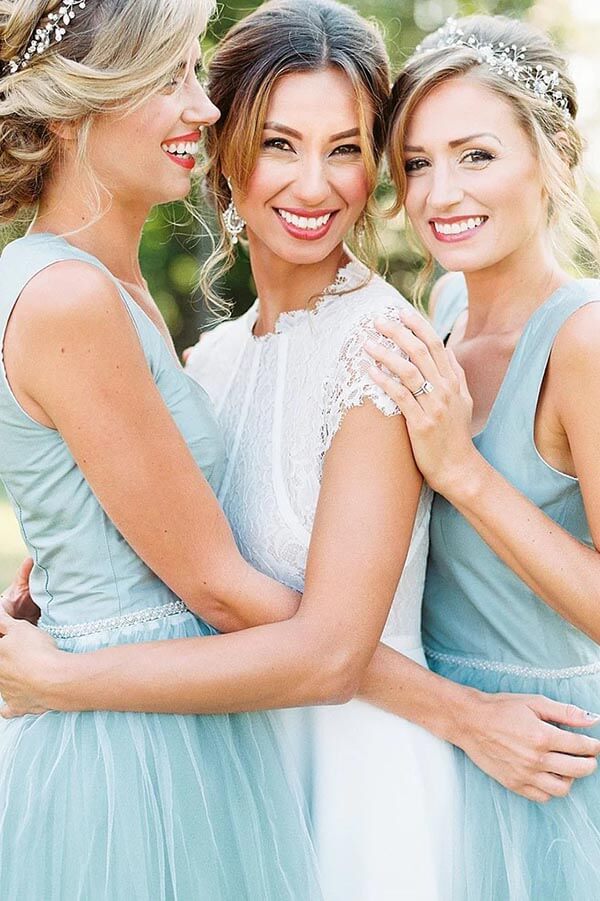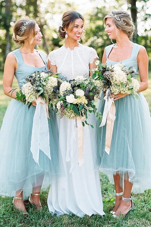 Tulle Beaded A-line Square Neck High-Low Simple Bridesmaid Dresses. MBD196