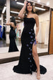 Make an unforgettable entrance in Maren. the epitome of timeless allure and contemporary flair. This black mermaid gown. crafted in luxurious glitter satin. is designed to accentuate your curves. trailing off into a sweep train that gracefully follows your every move. Its strapless neckline is an ode to classic beauty. showcasing your shoulders and collarbone. However. Maren's true magic lies in the details: exquisite butterfly-pattern beading delicately traces the edges of the daring slit. leading the eye to the show-stopping beaded fringes that dance with your every step. Securely lacing up in the back. Maren ensures you shine with confidence from every angle.