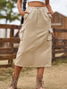 Buttoned Drawstring Pockets Solid Color Split-Joint A-line Skirts Bottoms