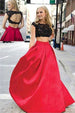 Charming Red And Black Two Pieces Lace Floor-length Prom Dresses Evening