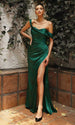 Parade a classic couture mesmerizes in this Cinderella Divine 7488 creation. Stunningly draped in a soft satin silhouette. this gown features an off shoulder neckline with swathe straps. Revealing a high slit. the skirt spills into a sweeping finish. Exude a romantic and alluring style in this Cinderella Divine masterpiece.