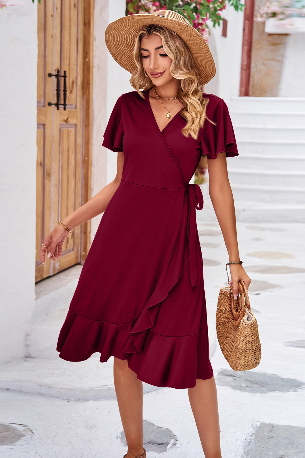 Flutter Sleeve Resort Dress – the essence of vacation elegance. Crafted from lightweight. breathable fabric. it keeps you cool and stylish in warm climates. With delicate flutter sleeves and a range of resort-inspired colors. it's perfect for poolside relaxation or beachside dinners. Elevate your resort wardrobe with this versatile piece. effortlessly expressing your unique style.. Shop all Women's Resort dresses! Pair this dress with our Jewelry!