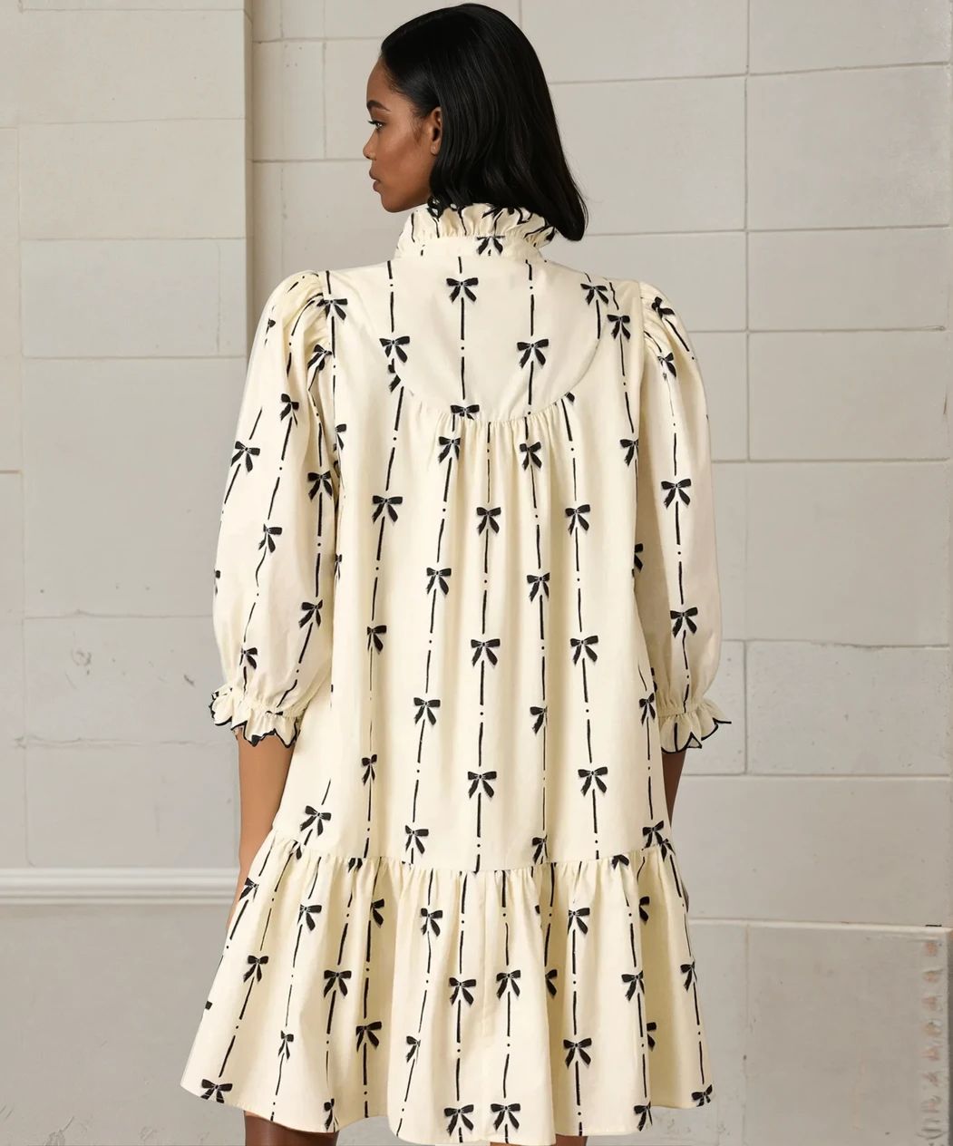 Turn heads with the Full Size Frill Bow Print Half Sleeve Mini Resort Dress. perfect for sunny getaways. Featuring a playful bow print. frill accents. and half sleeves. this mini dress combines comfort and charm. Its breezy fit and flattering silhouette make it a stylish choice for beach days. resort lunch. or casual outings. Shop all Women's Resort Wear.