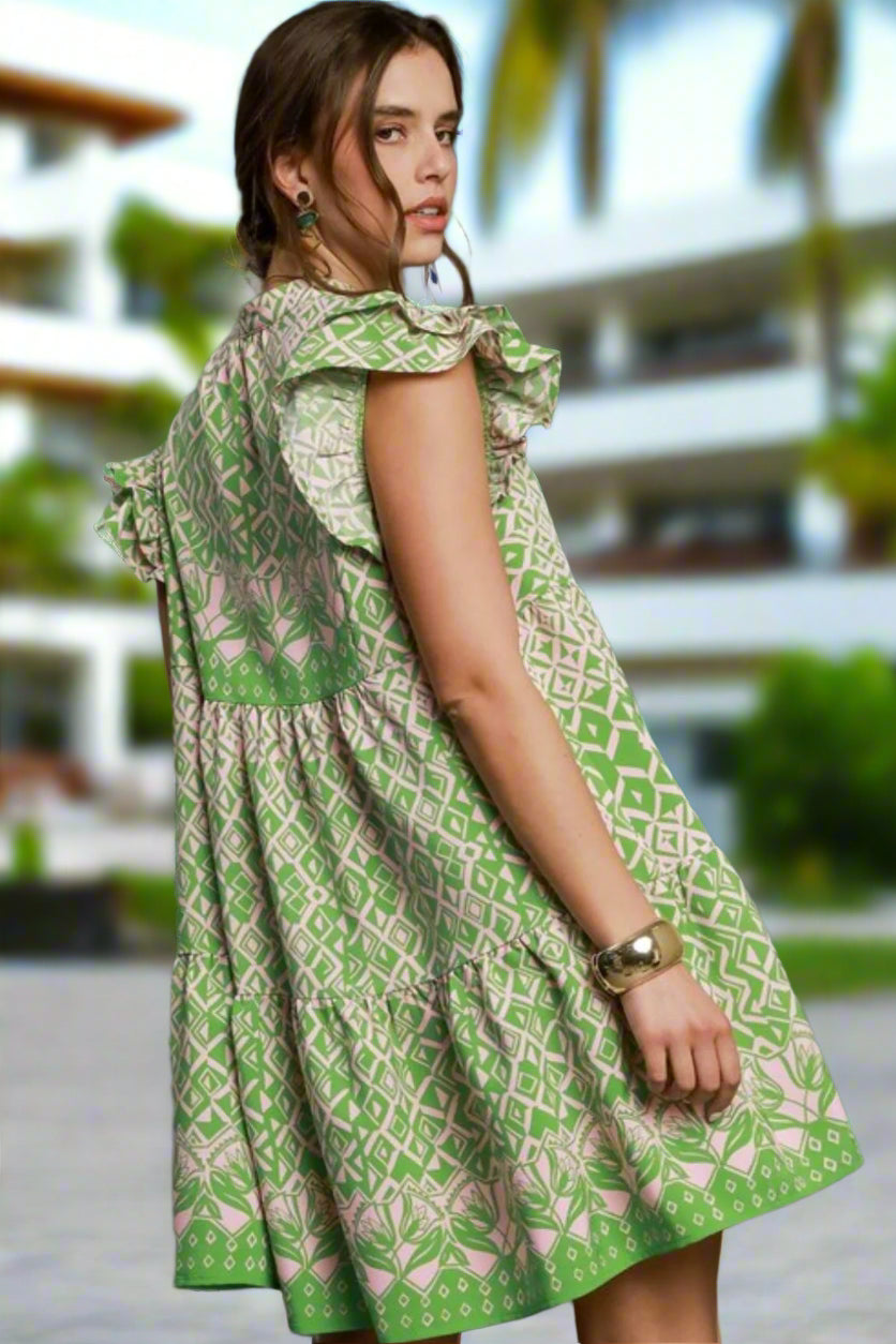 Resort Chic Dress! Full Size Mixed Print Mini Resort Dress. Made from high-quality materials. this dress features a variety of prints for a unique and stylish look. With its full-size design. it offers comfort and versatility for any occasion. Perfect for resort vacations and summer outings.