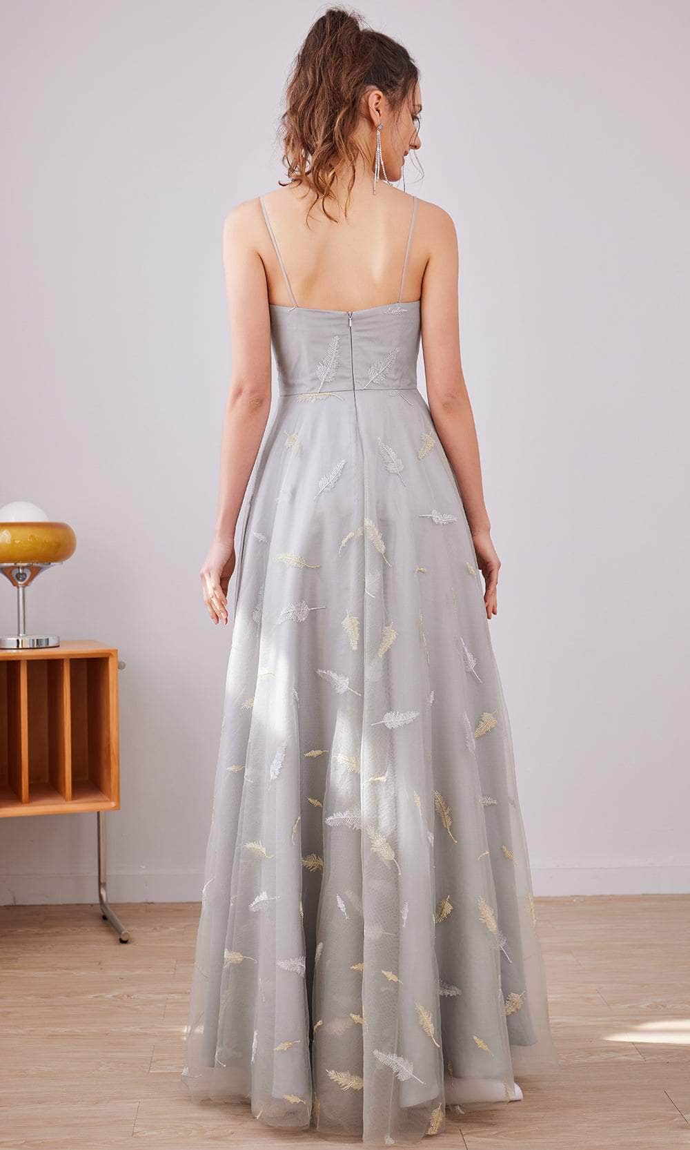 | Details: | Thin Straps. Back Zipper Closure. Mid-Open Back. Sheer Panel |