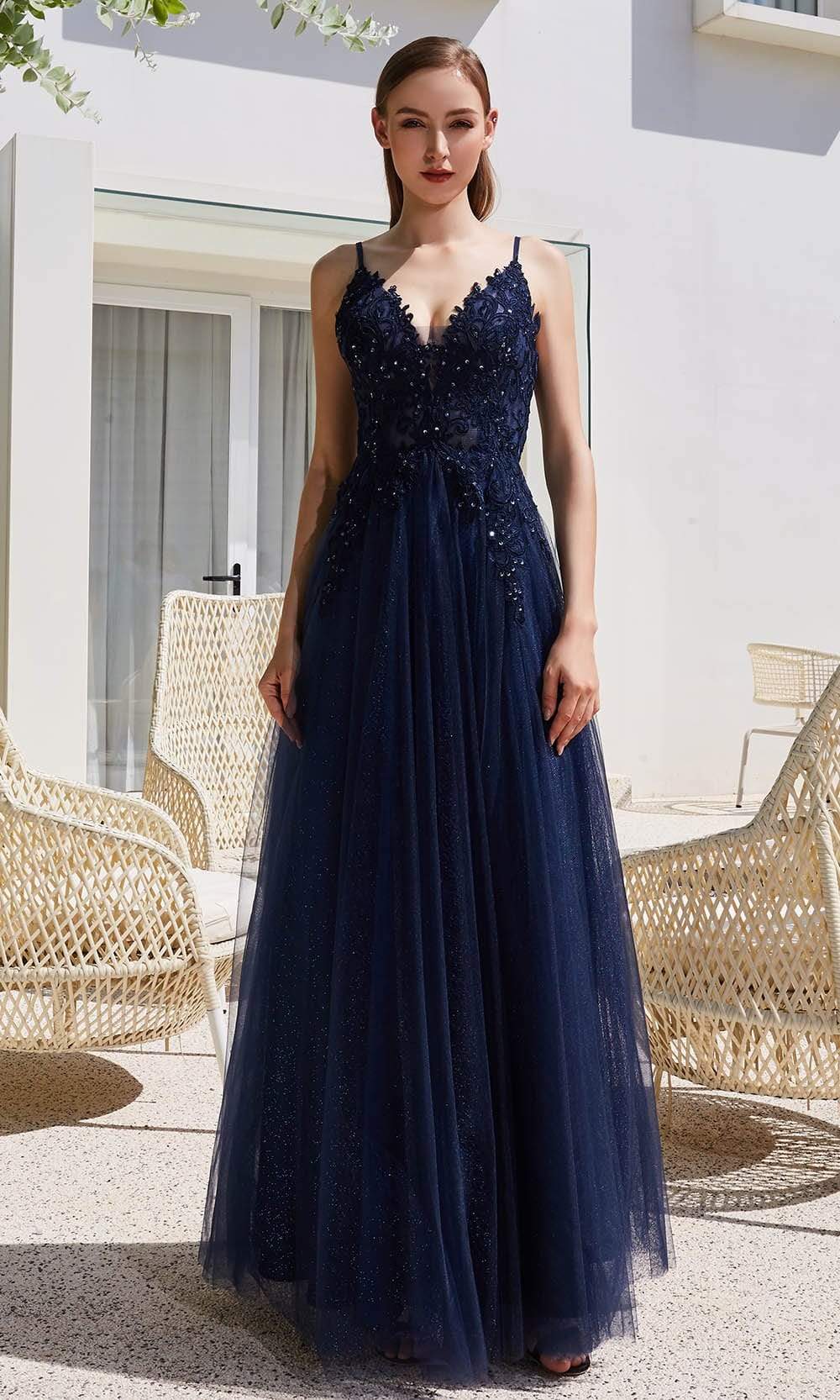 Dolled up in this stellar gown by Jadore JM104. Charms in a sleeveless semi-sheer bodice that is beautifully shielded with lace appliques showcasing a deep V-neckline with sheer inset. and a mid-open back. The bodice is held by thin shoulder straps and closes at the back with zipper. The dress parades a shimmering A-line silhouette with its full-length glitter tulle skirt. Experience the outstanding effect in this dazzling ballroom style gown by Jadore.