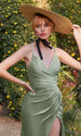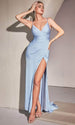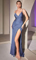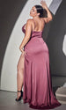 Be ready to catch everyones eyes in this creation by Ladivine 7494C. Made from chic satin fabric. this gown boasts a faux-wrap style deep v-neckline that adds charms with the delicately ruched detailing. A dainty adjustable spaghetti straps support the top as it leads to the mid-open zipped up back. Highlighted with a side slit. the skirt accentuates your sexy curves with its sheath silhouette that slides to a full length hem and sweeping train. This Ladivine 7494C evening gown will definitely make you feel special! Models are pictured wearing the variants: Black. Burgundy. Emerald. Lavender. Mauve. Mauve Rose. Paris Blue. Sage. Smoky Blue. and Lt Lavender.