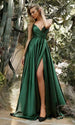 Details: | Tie Strap. Wrap Bodice. V-Open Back. Zipper Closure. High Slit. Sweep Train |