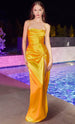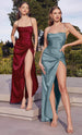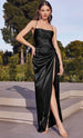 Dazzle all night long as you showcase allure and style in this Ladivine BD111 creation. Rendered with draping accents on a sleek tailored silhouette. this gown charms with a straight-across neckline and spaghetti straps. Accented with a knot detail and a thigh high slit. the sheath skirt shines as it trails into a full length hemline. Start off the night with pure elegance in this fascinatingly made Ladivine masterpiece. Models are wearing the Black. Burgundy. Robin Blue. Emerald. Royal. Orchid. Dusty Rose and Yellow colors.