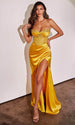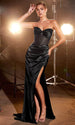 Make an astonishing statement when you walk into this Ladivine CD295 creation. Crafted with luxurious satin. this strapless gown flaunts an illusion corset boning bodice beautifully ornamented with a floral pattern of beadings. The sweetheart neckline is alluring with unique pleated details at the bust. while the mid-open back is secured by the strappy lace-up closure. The wrap-style skirt sculpts a sheath silhouette that flawlessly descends to the sweeping train. culminating in a thigh-high leg slit that adds a flirtatious hint. This Ladivine CD295 gown will make feel like royalty on your special night. Models are wearing Black. Dusty Rose. Emerald. Fuchsia. Marigold. Paris Blue. Red. and Sunkiss Orange colors.