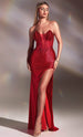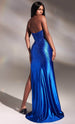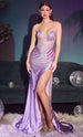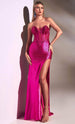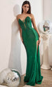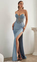 Make your presence know when you saunter with style in this Ladivine CDS419 creation. Festooned with heat set stones allover its structured length. this gown shows a strapless bodice with a sheer corset boned design and a v-styled neckline. Glittering with embellishments on a drape ornate skirt. a high slit as it finishes with a trailing train. Start off the night with pure elegance in this fascinatingly made Ladivine masterpiece. Models are wearing the Black. Burgundy. Dusty Blue. Emerald. Fuchsia. Lavender and Royal colors.