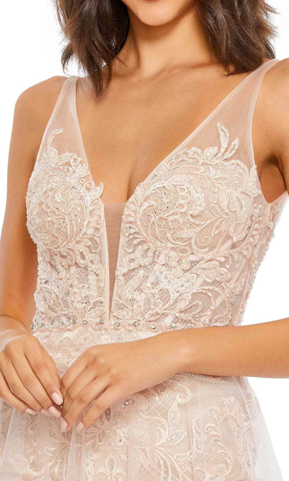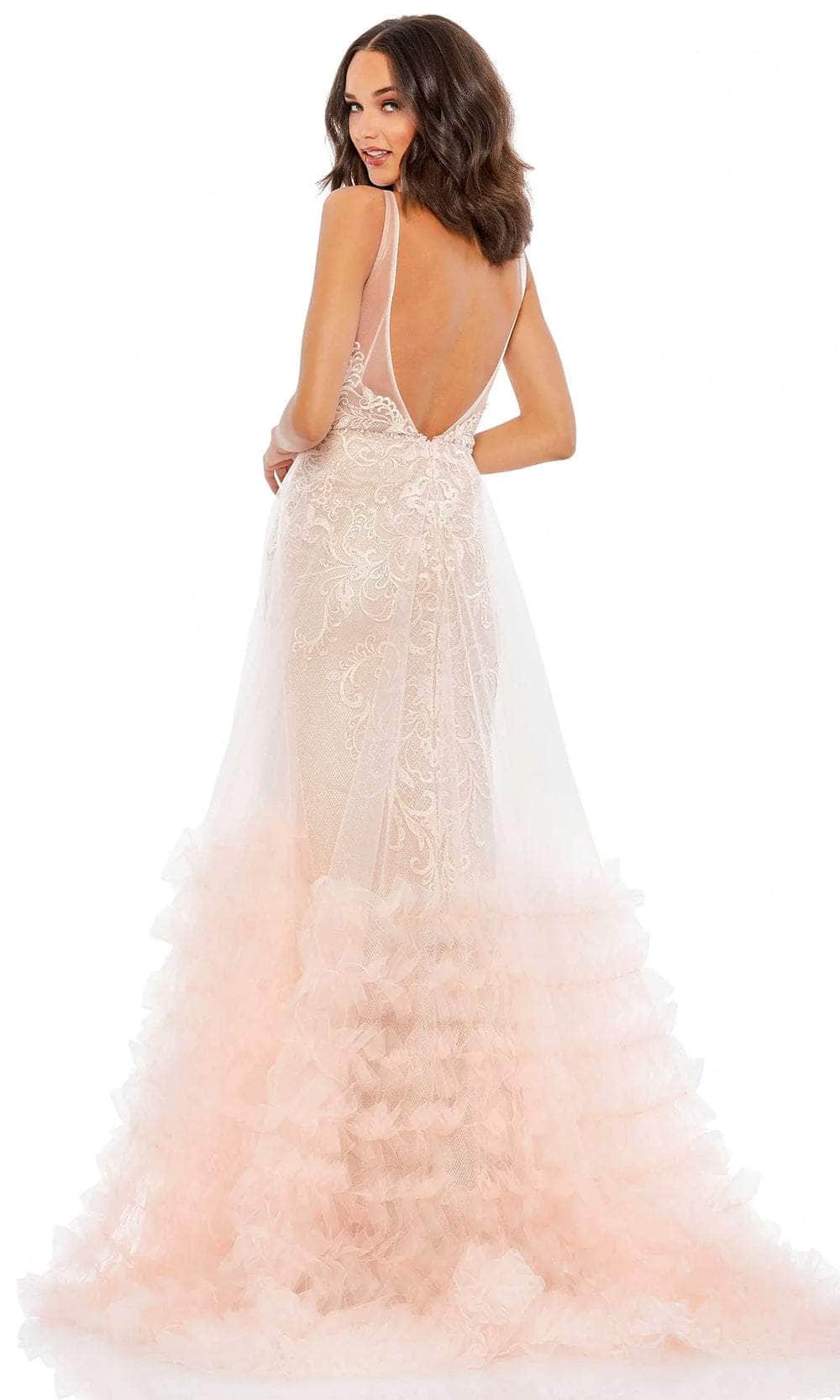 Turn yourself into a head-turning beauty by slipping into this eye-catching Mac Duggal 11183 masterpiece. Stylishly adorned with glittering latticework from the top down to the skirt. this form-fitting dress stands out in a sleeveless plunging V-neckline accented with a mesh inset at the bust and an open back. Ruffled tiered details is adorned on the A-line skirt that delightfully falls down in a full-length hem. This Mac Duggal 11183 dress is sure to make you the darling of the party! Models are wearing Peach color. Find more Mac Duggal Dresses.