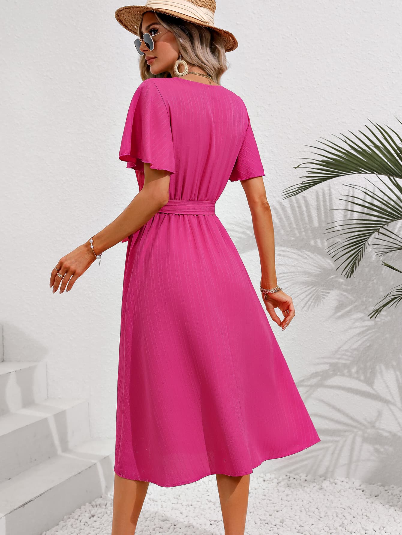 Embrace resort elegance with our Malibu Pink Tie Belt Midi Resort Dress. Crafted with care. this Pink Resort dress exudes a perfect blend of style and comfort. ideal for beachside getaways or leisurely summer days. The tie belt adds a touch of femininity and allows for a customizable fit. Make a statement in the Malibu Pink Tie Belt Midi Resort Dress and experience the perfect fusion of fashion and ease. Shop Women's Resort Wear at The Landing World®