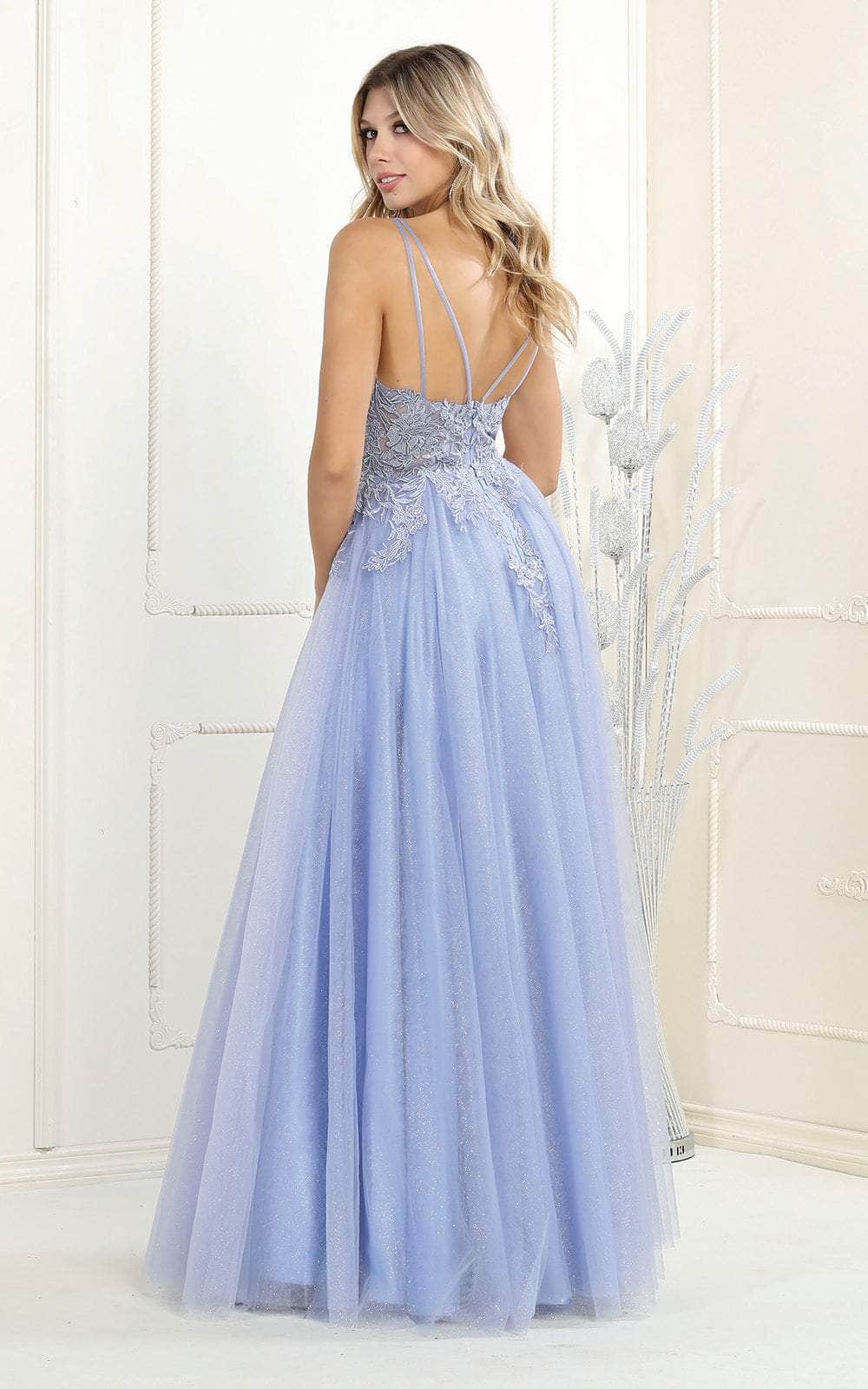 Make a memorable splash at your upscale evening in this lux formal A-line dress by May Queen. This glamorous dress features an illusion inset and dual spaghetti straps on the embroidered bodice that is also detailed with multicolored beads and is secured with a back zipper. The embroideries follow down below the waist area into the multilayered and glittery A-line skirt. Bring a touch of sunshine to your fancy-dress event in this creation by May Queen! Models are pictured wearing Dusty blue. Hunter green. Ivory and Lilac variants.