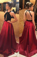 Round Neck A-Line Keyhole Backless Dark Red Satin Prom/Formal Dress.