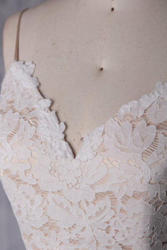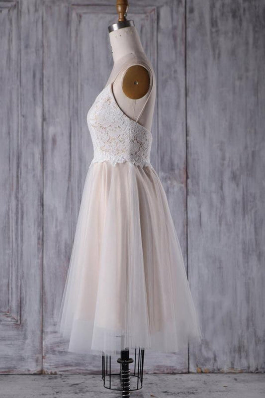 product name: Spaghetti Strap Lace Tulle Short Wedding Dress