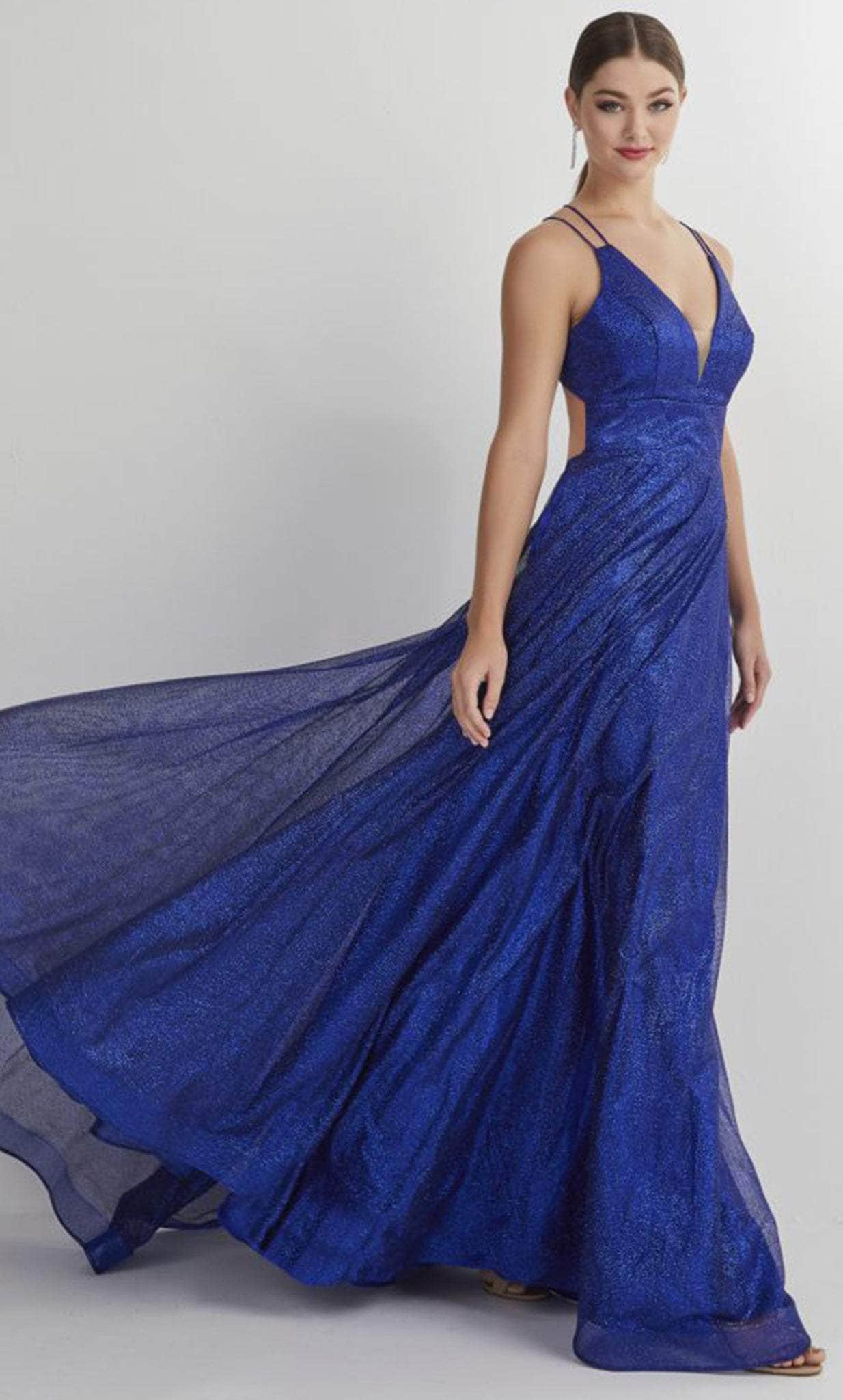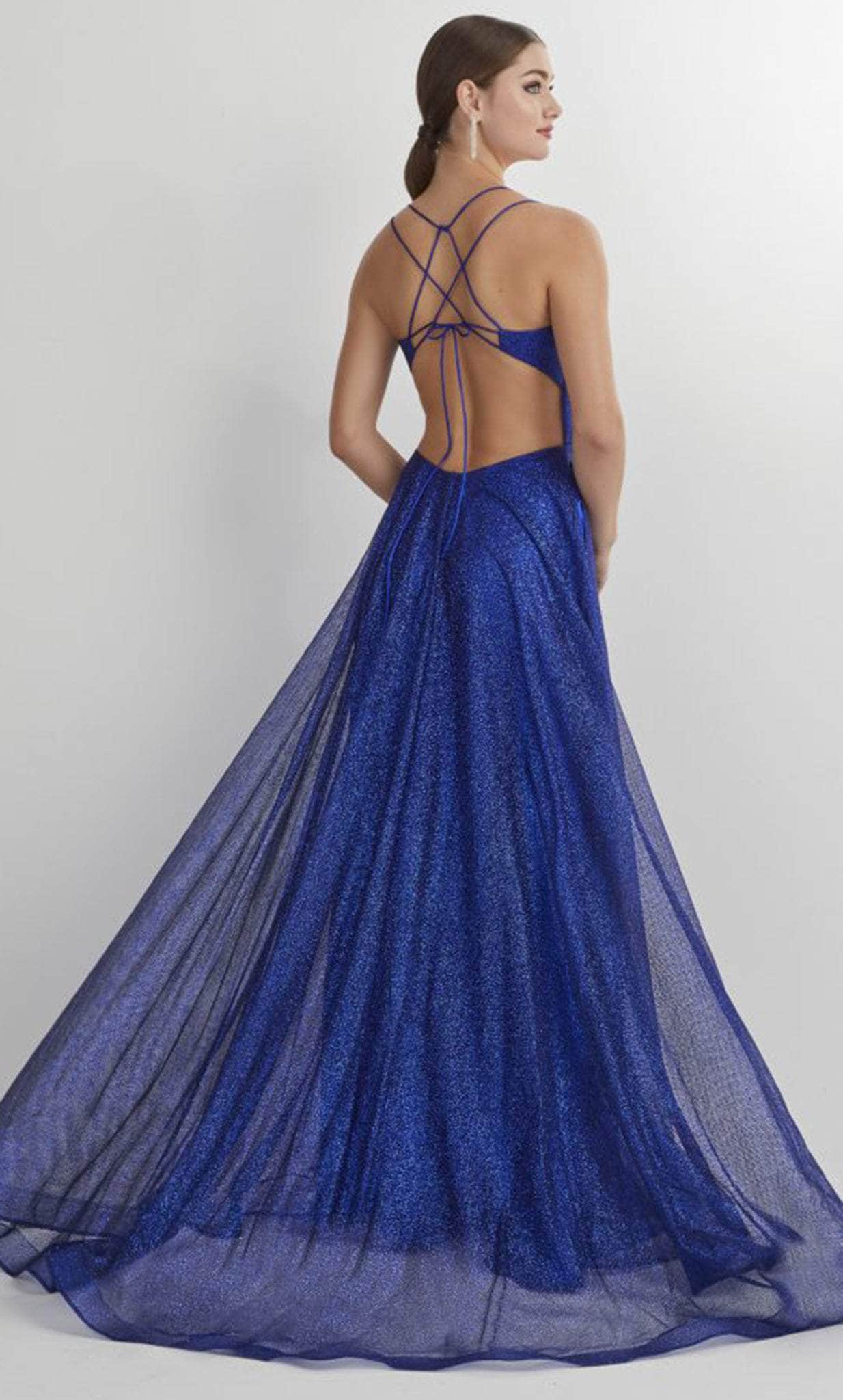 Capture that striking presence and get everyones attention in Studio 17 Prom 12895 gown. Crafted in diamond tulle that gives a perfect subtle sparkle. this striking gown features a sheer inset detail on the bust. a plunging v-neckline with a dual spaghetti strap that lace-up at the back. Defined with a tonal wide waistband. the A-line skirt beautifully flows to the full length hem with horsehair trim and sweep train finish. This Studio 17 Prom 12895 masterpiece is a classic look that works for many special occasions. Models are wearing the Emerald and Royal colors.