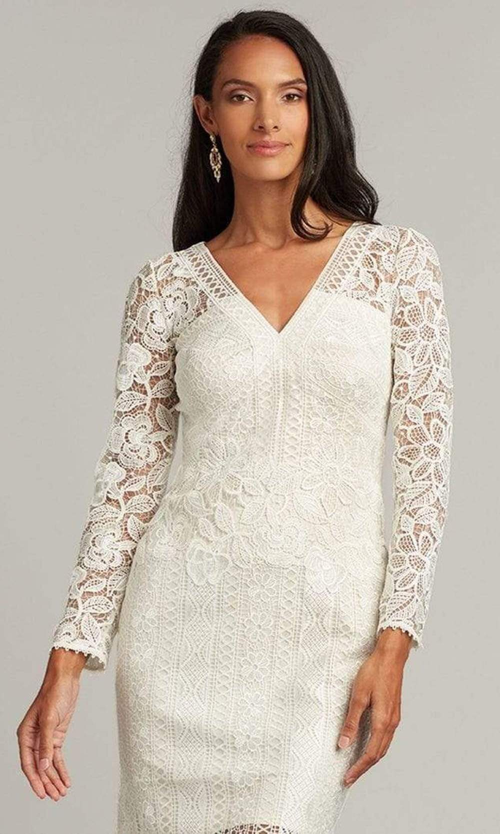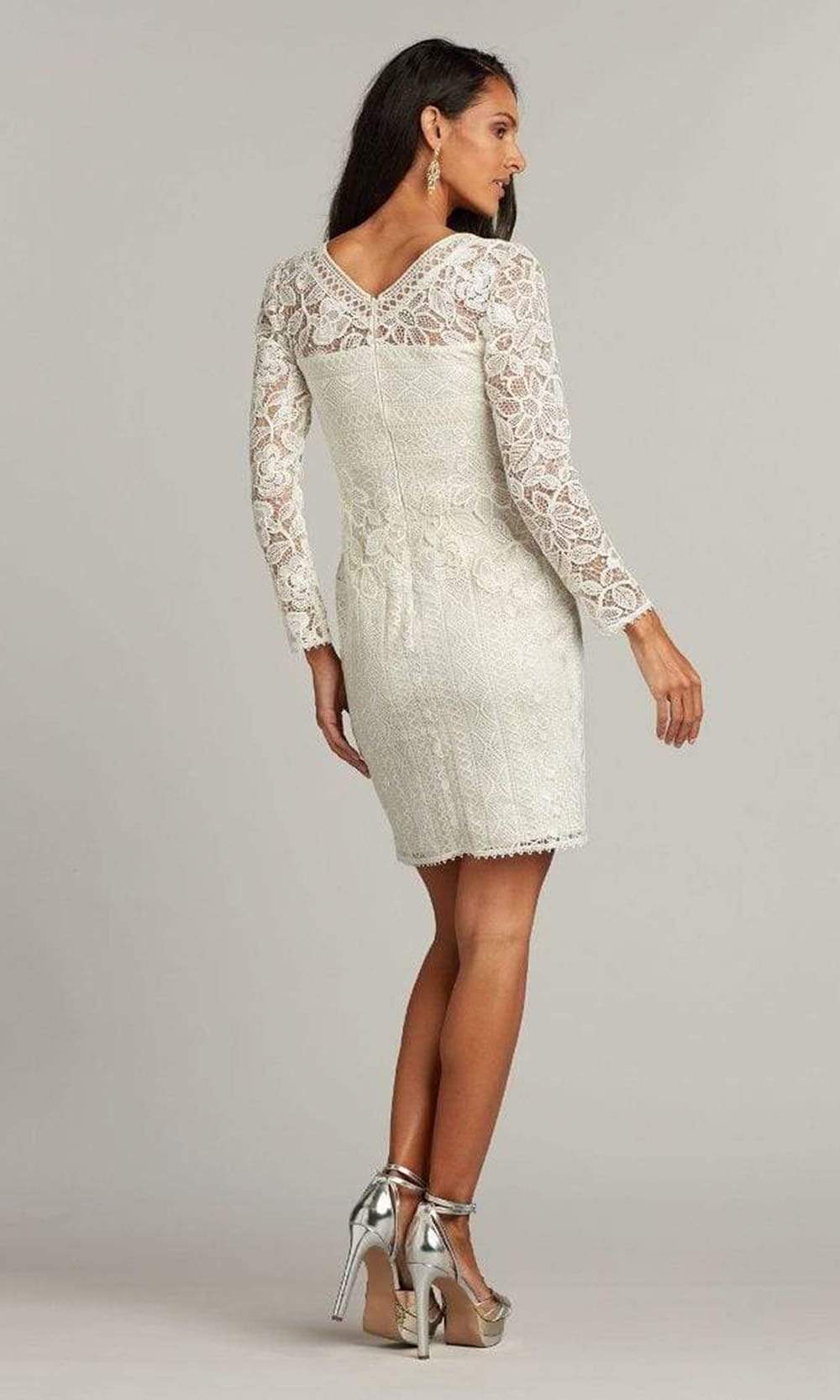 | Details: | Laced. Sheath. Long Sleeve. Straight. Short Dress. V-Neck. Concealed Back Zipper |