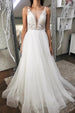 Tulle A-line V-neck Wedding Dresses With Lace Appliques. Bridal Gowns.