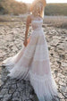 Tulle Lace Spaghetti Straps Boho Wedding Dresses. A-line Bridal Gown.