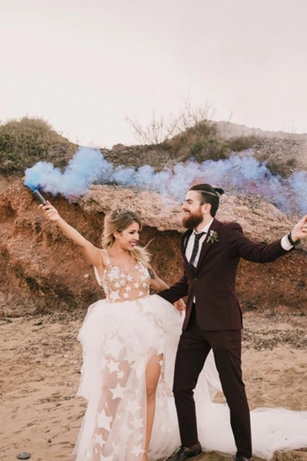 Unique See Through Ivory Stars Lace Pattern Bridal Dress Edgy Wedding Dresses.MW372