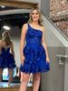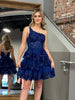Introducing Dress Emma from KissProm. the A-line one-shoulder homecoming dress that is as enchanting as the night sky. Crafted from the finest lace fabric. Emma is a breathtaking display of elegance. Its charm is accentuated with sequin embellishments that shimmer in the light and its A-line silhouette is designed to flatter various body types. The short mini length adds a playful. youthful spirit to the otherwise elegant design. A one-shoulder neckline tastefully reveals a hint of skin. while the sleeveless design makes it an ideal choice for dancing and celebrating.