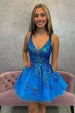 Introducing the Davina Lace Plunge V Backless A-Line Short Homecoming Dress. Available in Green. Lilac. Orange. and Royal Blue. this enchanting A-line dress features a plunging V-neck and backless design for bold sophistication. The sleeveless silhouette offers a flattering look. Crafted from lace and delicate tulle. it showcases appliqued details and an illusion corset bodice. ensuring a captivating look. With a lace-up back for a perfect fit. Davina is ideal for making a statement at any homecoming event.