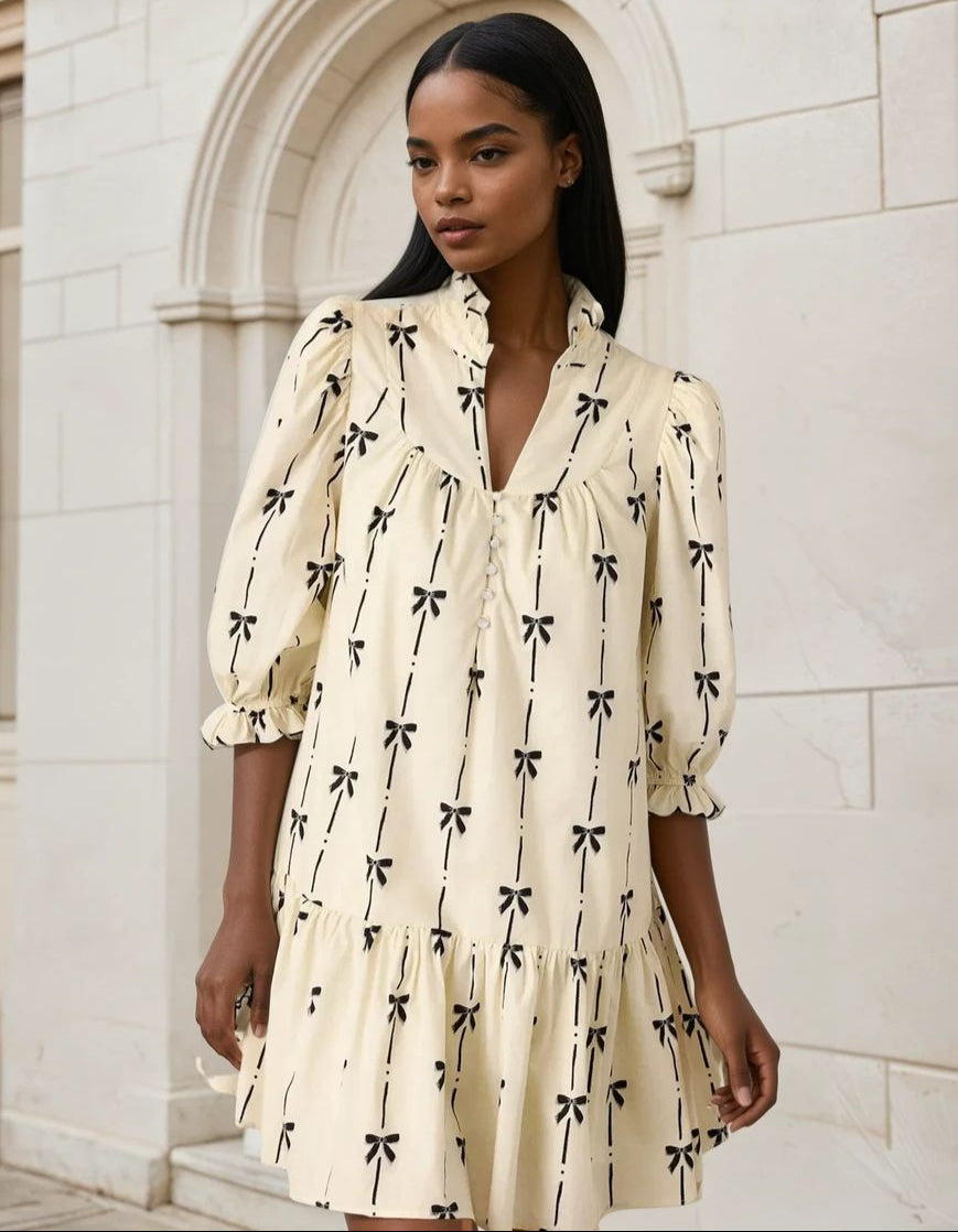 Turn heads with the Full Size Frill Bow Print Half Sleeve Mini Resort Dress. perfect for sunny getaways. Featuring a playful bow print. frill accents. and half sleeves. this mini dress combines comfort and charm. Its breezy fit and flattering silhouette make it a stylish choice for beach days. resort lunch. or casual outings. Shop all Women's Resort Wear.