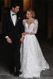 Leaves Lace Tulle Long Sleeves Boho Wedding Dresses. Bridal Gown.