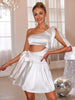 Bring a touch of Monaco or New York style to your next cruise ship night out with our Tied Cutout Single Shoulder Mini Cocktail Dress. The unique cutout design and tied single shoulder add a seductive twist to this classic dress. Perfect for standing out on the dance floor.