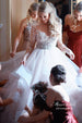 Tulle Open Back Bateau Neckline Long Sleeves Lace Wedding Dresses.